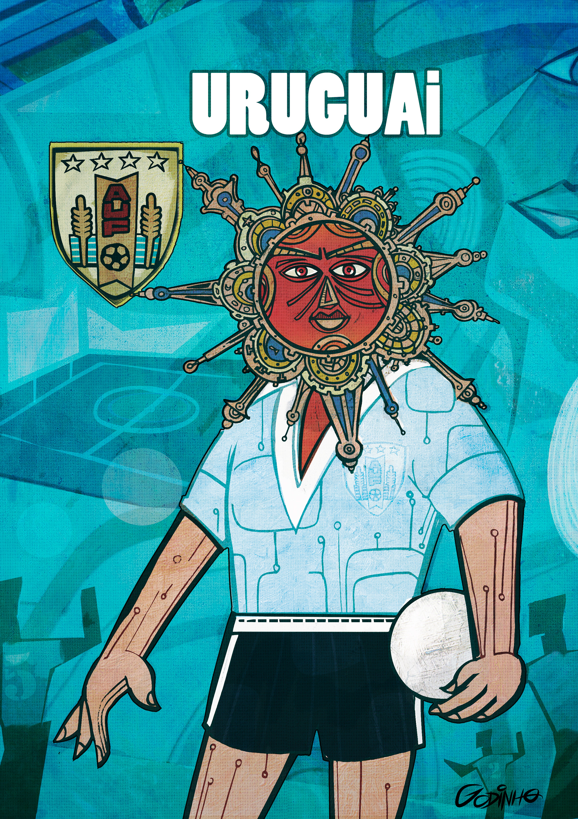 PARA PROMOVER a COPA DAS CONFEDERAÇÔES DISPUTADA NO BRASIL EM 2013, FOI ORGANIZADA UMA EXPOSIÇÃO que trazia através da LINHA GRÁFICA DE ARTISTAS REPRESENTATIVOS DE CADA PAÍS os escudas de cada seleção.